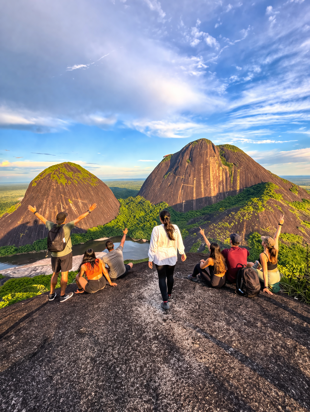 Te esperaremos en el aeropuerto de Inírida, la capital de Guainía. Te embarcarás por el río Inírida rumbo a los Cerros de Mavicure, e ingresarás al territorio del resguardo indígena del Venado, que se asienta a los pies de los Cerros. Degustarás un almuerzo típico de la región y posteriormente, haremos una caminata ecológica explorando los alrededores, culminando en el mirador Dugjin para deleitarte con un impresionante atardecer. Pasarás la noche en el hospedaje los Tucanes, donde tomarás la cena.